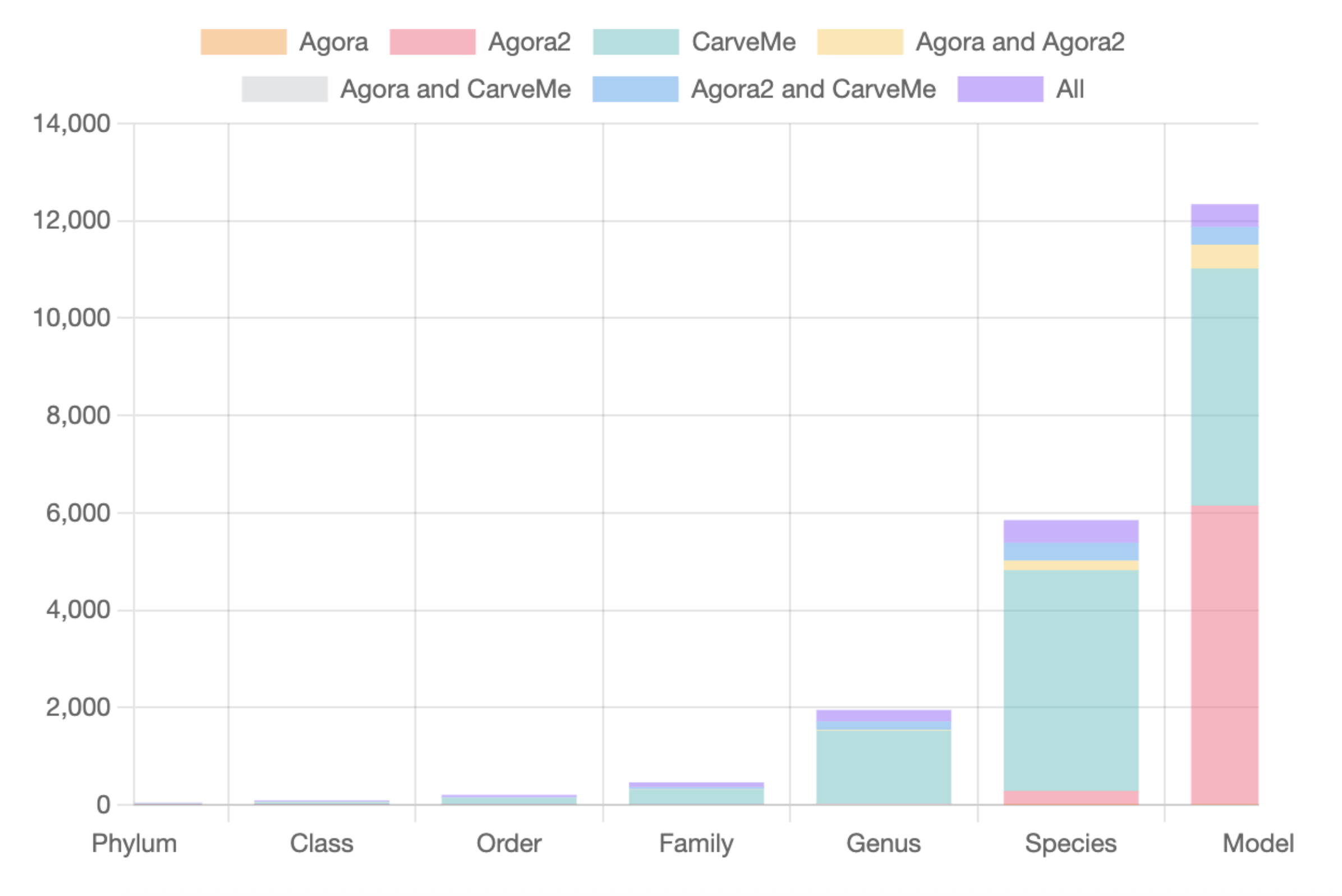 Genome-Scale Metabolic Models (GEMs)GEMs contain all known metabolic information including the genes, enzymes, reactions, and metabolites of a biological system. They are powerful tools to predict cellular metabolism and physiological states in living organisms. MicrobiomeNet currently contains 12,400 GEMs covering a broad ranges of taxonomies. Users can search, view and compare GEMs for microbes of interest. Pathways (also known as subsystems) are a set of reactions that share a similar metabolic function. MicrobiomeNet currently contains a total of 137 pathways extracted from the GEMs. |